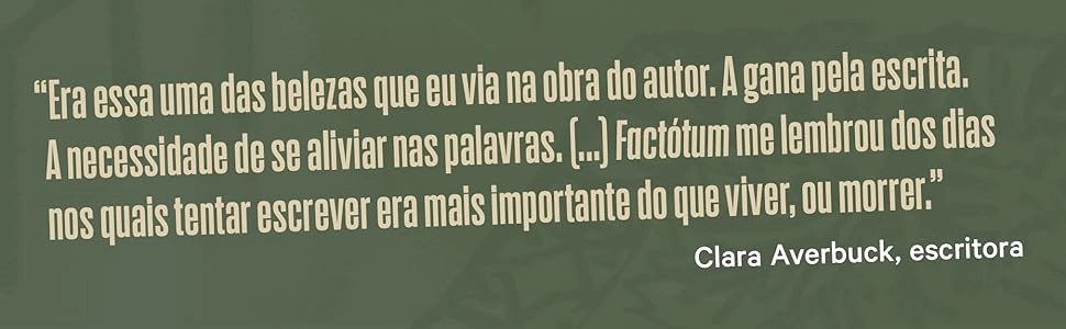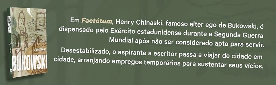 De um dos escritores mais reverenciados da literatura americana contemporânea, Charles Bukowski, Factótum narra mais um episódio da vida turbulenta de seu alter ego Henry Chinaski, um uma evocação magistral e vívida da urbanidade, do alcoolismo e da precarização do trabalho.